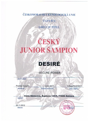 ČESKÝ JUNIOR ŠAMPION/CZECH JUNIOR CHAMPION